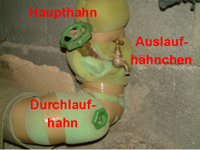 Entleerungshahn im Keller öffnen und Wasser auslaufen lassen